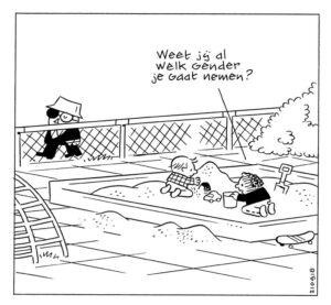 Dus kom erbij! Wees inclusief en loop niet te pruilen in je exclusieve kringetje. Doe mee, lach om en met elkaar. Wat je in bed bent en doet is eigen zaak. Daarbuiten ben je eerst en vooral mens, m/v/x – vooruit.